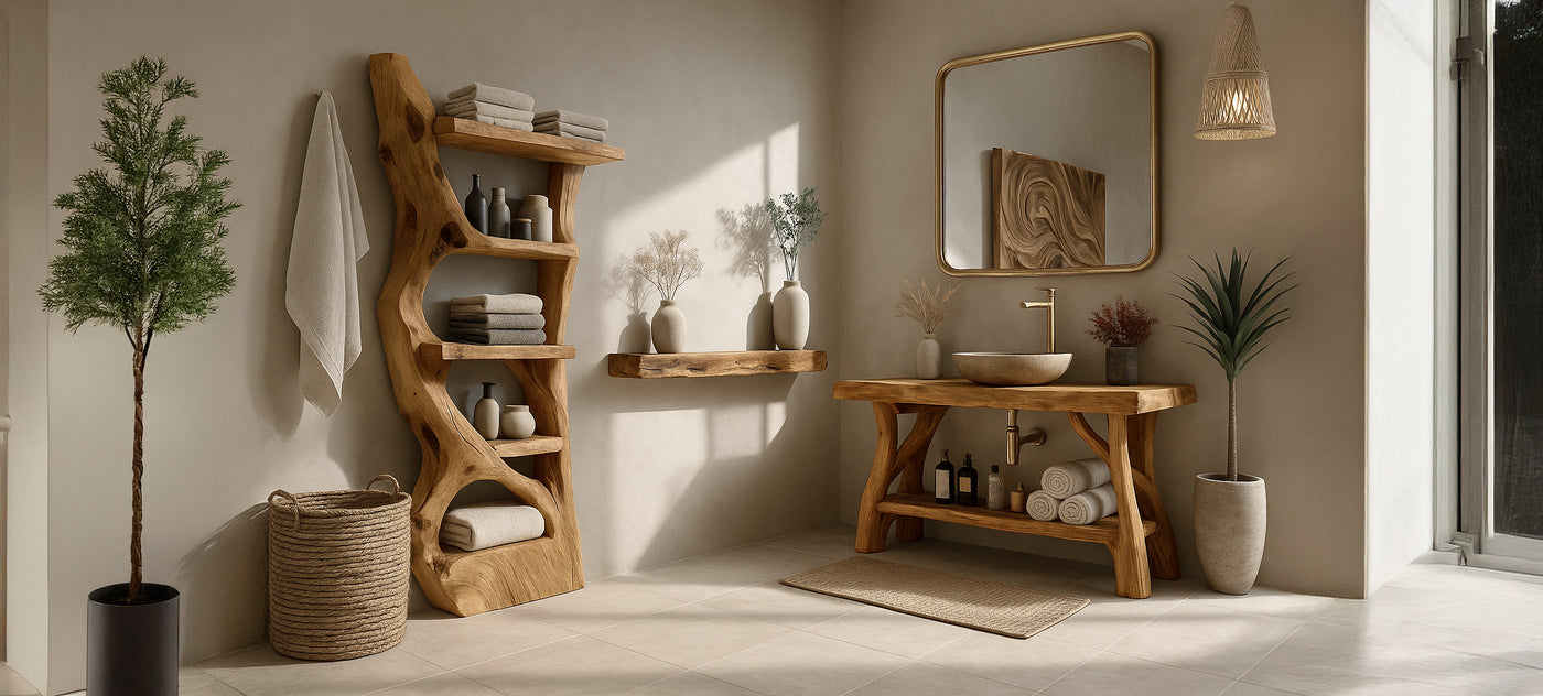 Contemporary Rustic Solid Wood Bathroom Vanity with Shelf