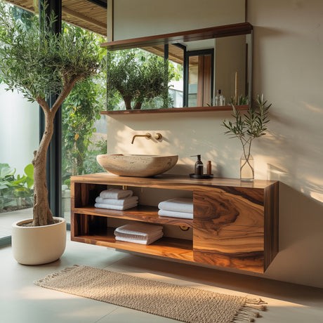 Regular price $1,400.00Unit price /UnavailableEchra Rustic Handcrafted Solid Wood Floating Bathroom Vanity Slab