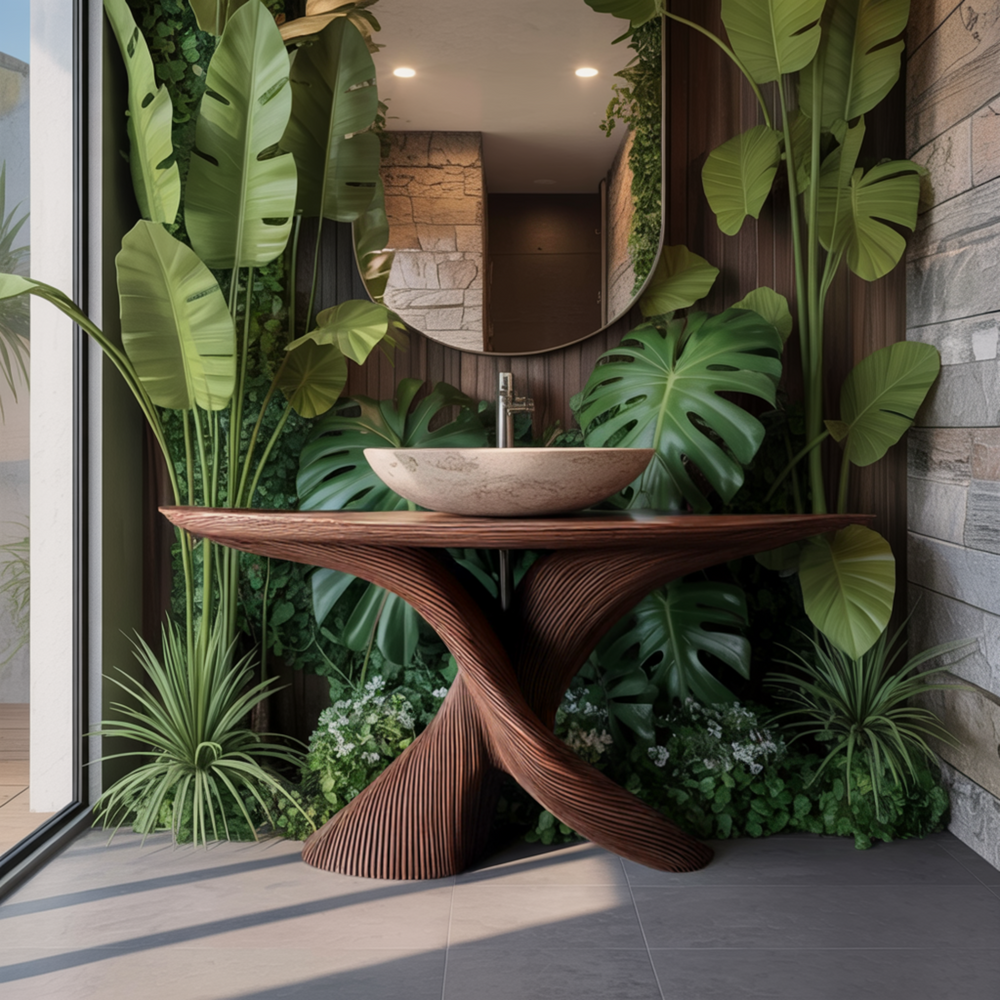 Elaris Sculptural Solid Wood Bathroom Vanity Table