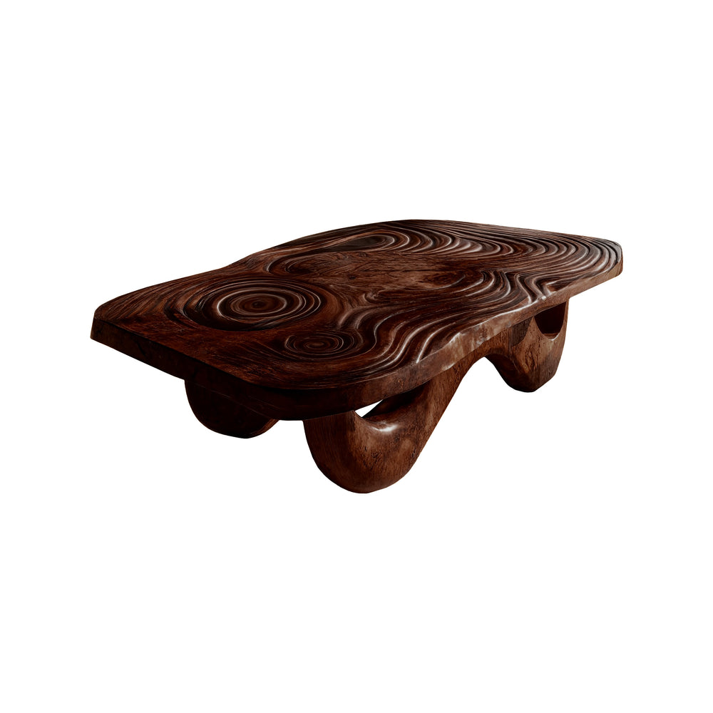 The Nuvra Wave Solid Wood Coffee Table captures the tranquil rhythm of water translated into sculptural form.