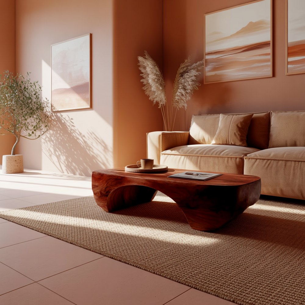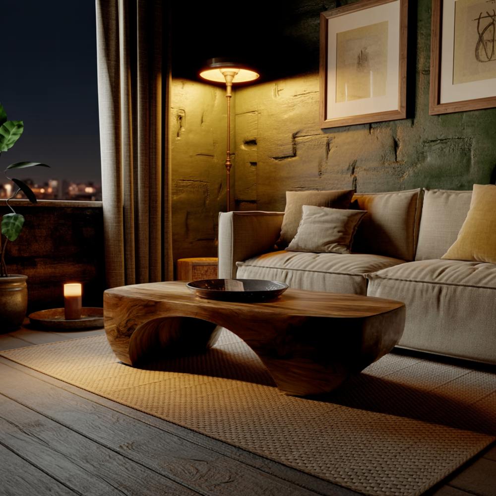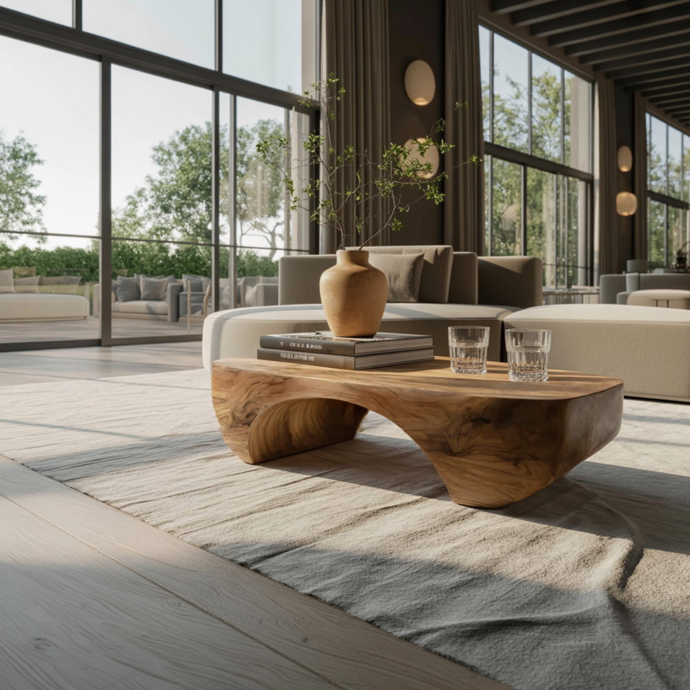 Each table is sculpted from solid hardwood, where organic grain patterns meet bold architectural curves.