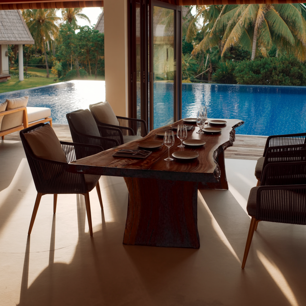 Perfect for urban lofts, rustic-modern dining rooms, industrial-inspired homes and spaces that value organic materials. The Ridgewood Dining Table pairs beautifully with leather chairs, ceramic dinnerware, stone décor accents and warm neutral palettes. Its bold, grounded silhouette makes it a centerpiece for family gatherings, intimate dinners and curated hosting environments where natural craftsmanship becomes the focal point.