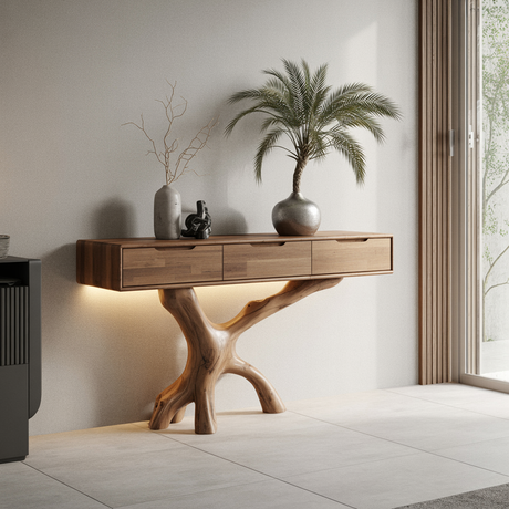 Arboris Branch-Leg Console Table with Modern Drawer Top