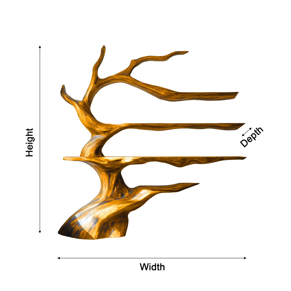 Noctaryn Flow is defined by a deep, flowing trunk form with elongated branches that stretch horizontally across the wall. The silhouette feels grounded and confident, with a stronger visual weight compared to lighter tree designs. The shelves grow outward from the trunk in smooth layers, creating a sense of natural balance and quiet strength. This design leans toward organic modern and contemporary interiors where warmth, depth, and material presence are essential.