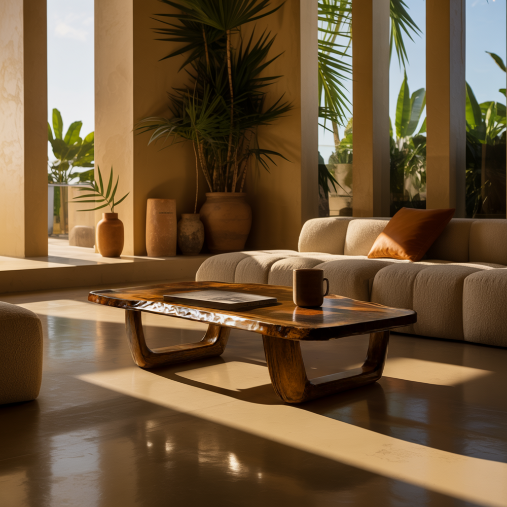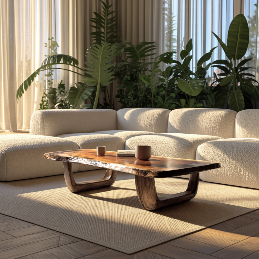 The Solace Drift Live Edge Solid Wood Coffee Table embodies a calm, refined Organic Modern aesthetic. Its live edge surface preserves the natural flow of the wood, while the softened curves and asymmetrical lines add gentle movement to the room. The rounded U-frame legs bring balance and sculptural elegance, grounding the piece in a warm, relaxed presence. Perfect for Japandi, Tropical Modern and contemporary minimalist interiors, this table serves as both a functional centerpiece and a natural work of art.