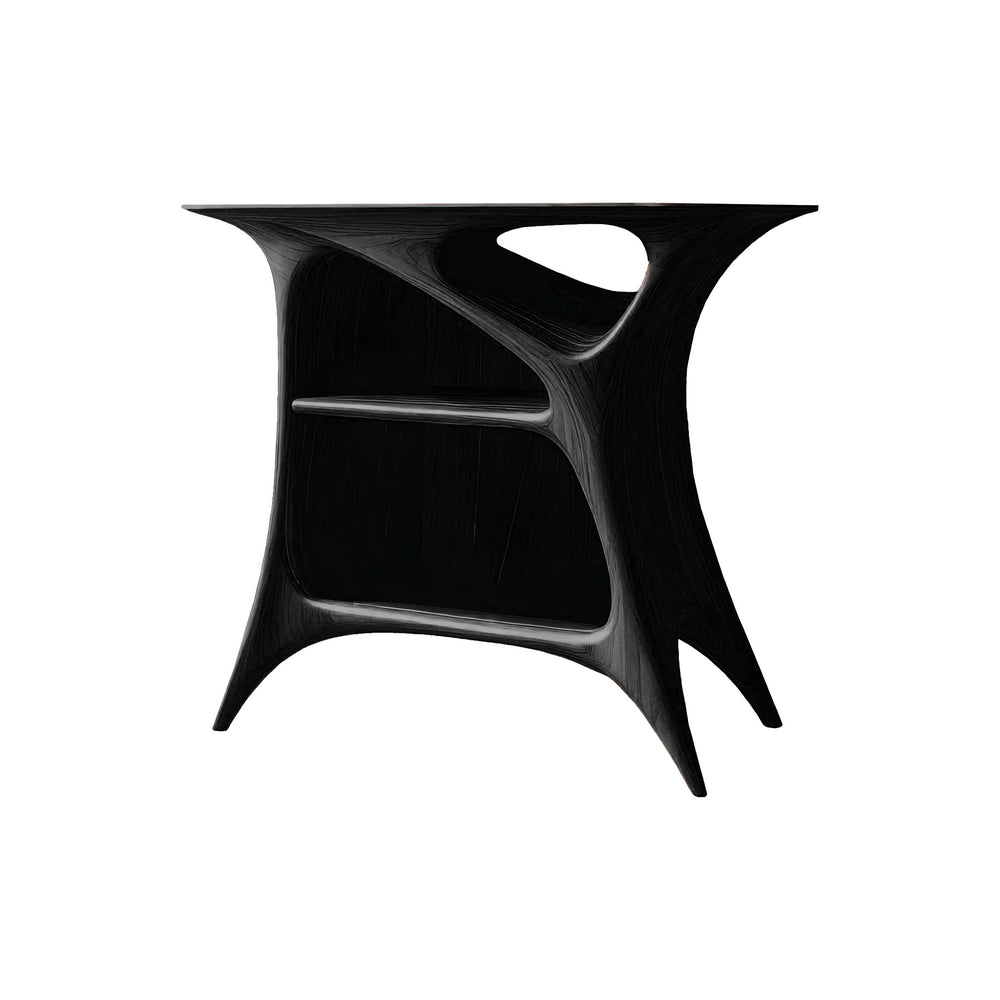 The Sonara Sculpted Solid Wood Record Player Stand is designed for homes where music becomes a focal point. Its fluid, continuous structure forms smooth openings that provide a dynamic, sculptural presence suited to creative modern interiors.