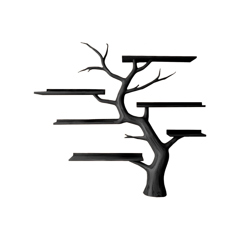 This wall-mounted bookshelf blends form and function, offering multi-tier storage for plants, books, and decor. Its branch-style structure distributes weight evenly, allowing for both visual openness and practical usability. The minimalist trunk creates the illusion of growth from the wall, making it a living architectural statement in itself.