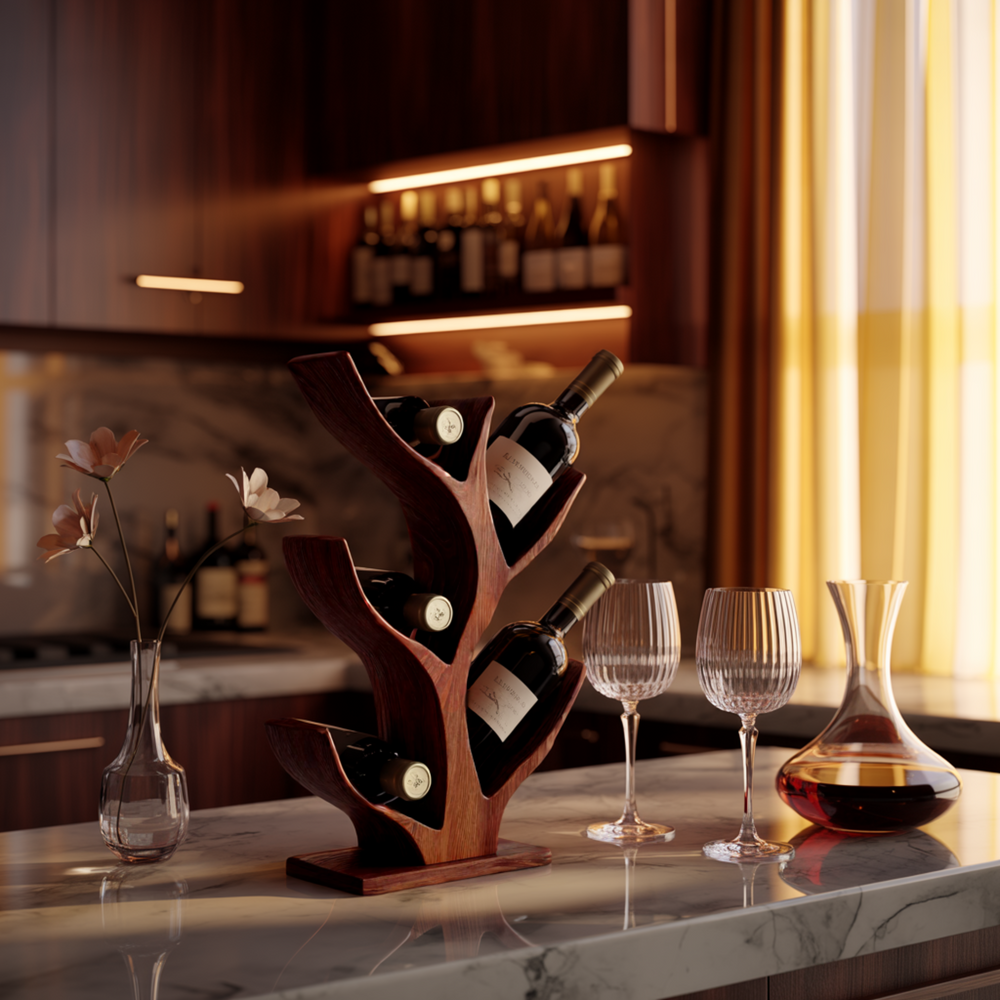 Each wine rack is one-of-a-kind, shaped from the natural grain and flow of genuine hardwood. The sculptural, tree-branch design not only holds your wine securely but also brings organic artistry into your living or dining space.