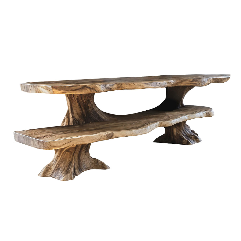 Featuring two wide tiers supported by sculptural tree-like bases, this cabinet balances everyday function with natural artistry. Its Timeless Craftsmanship Live Edge character ensures it serves as both a practical media unit and a striking centerpiece in your home.