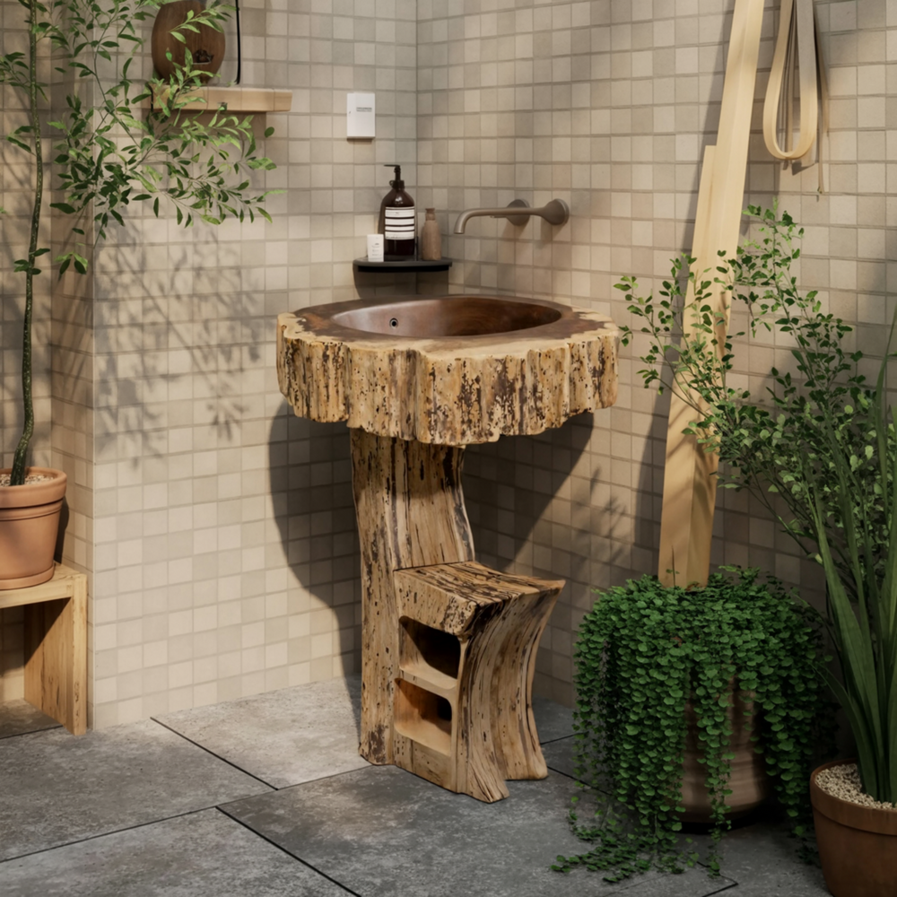 Perfect for bathrooms, garden suites, or natural spas, the Trunk Pedestal Sink harmonizes beautifully with stone, clay, or botanical textures. Pair it with soft ambient lighting and foliage to evoke a tranquil, restorative environment.